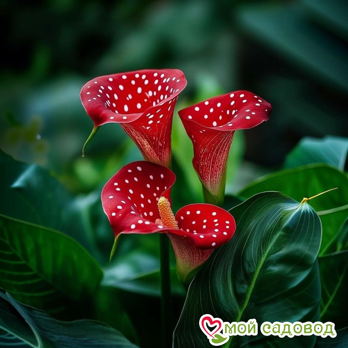Размножение: Каллы размножают делением клубней или корневищ, а также семенами. Деление клубней или корневищ лучше всего проводить весной, перед посадкой. Семена можно высевать весной в хорошо дренированную почву.